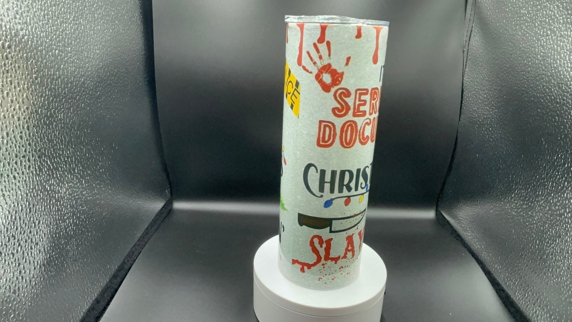 Thank you for choosing this holiday-inspired tumbler! Enjoy every sip while you sleigh those true crime marathons! 🔪🎄